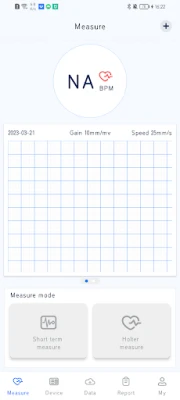 The dynamic ECG signal is collected by single-channel ECG recorder with disposable electrodes, and it is transmitted to the user’s mobile APP via Bluetooth. Users can view the real-time ECG waveform and send the ECG data to the server. The charging base can charge the recorder as well as exporting all the dynamic ecg data.