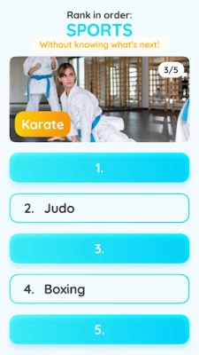 Rank your favourite food, sports, holiday destinations without knowing what is next in a category!