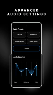 • Multimedia Mode - Set preset modes with Audio Preset. Create your own Custom preset using the Audio Equalizer, by adjusting settings for bass, mid-range, and treble levels. Or choose from predefined audio profiles: Default, Bass Boost, Speech Boost and Treble Boost