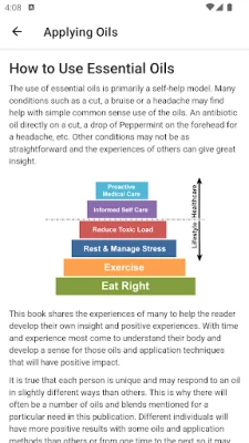 An encyclopedia of information about essential oils, blends and their application for wellness benefits. The primary content is a listing of over 350 health concerns and included with them is a brief description of the health concern, what essential oils are suggested, how to apply them and the experiences others have had. Beyond this there are included an overview of what essential oils are and where they come from, a summary of how essential oils are used, a glossary of terms associated with essential oils for those new to their use and details on how to use essential oils safely.