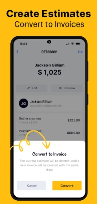 > For those who are self-employed and perform work on estimates: transfer your work data to a convenient invoice manager or invoice keeper.