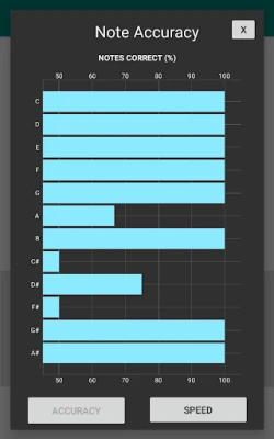 You will be able see stats on your performance including how accurate you are at identifying each note, and how long it takes you to identify each note.