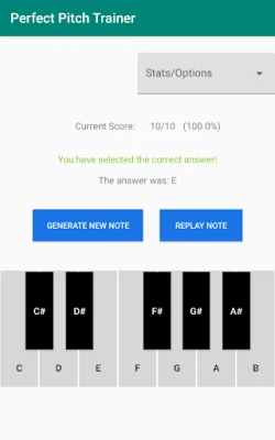 Generate and identify music notes until your heart's content. You will be able to press an onscreen keyboard to identify what note is being played.