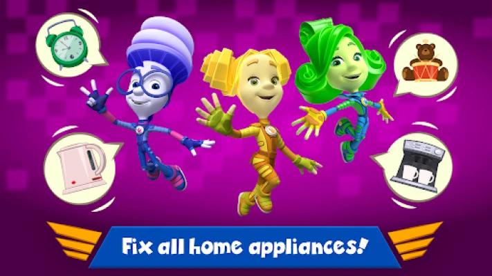Little kids can fly a helicopter! Choose the character to play for free or watch ads and go! Games for 7 year old boys is always popular with little investigators! Boy and girl games with Fixies on your phone! 👶🎮