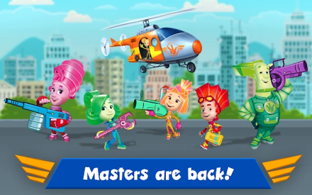 The Fixies the Masters are back! 🔨🔧🔩 This time Fixies will ride a helicopter! Join them and play a boy games free! There are many breakages around the city. There are boy and girl games! 👶🎮